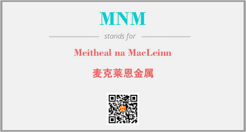 上述内容是“Meitheal na MacLeinn”作为“MNM”的缩写,解释为“麦克莱恩金属”时的信息,以及英文缩略词MNM所代表的英文单词,其对应的中文拼音、详细解释以及在英文中的流行度和相关分类、应用领域及应用示例等。