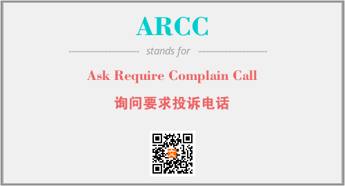 英文缩略词“ARCC”经常作为“Ask Require Complain Call”的英文缩写来使用,中文表示:“询问要求投诉电话”。本文将详细介绍英文缩写词ARCC所代表英文单词,其对应的中文拼音、详细解释以及在英语中的流行度。此外,还有关于缩略词ARCC的分类、应用领域及相关应用示例等。