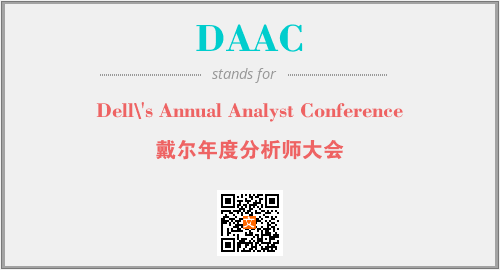 上述内容是“Dell\'s Annual Analyst Conference”作为“DAAC”的缩写,解释为“戴尔年度分析师大会”时的信息,以及英文缩略词DAAC所代表的英文单词,其对应的中文拼音、详细解释以及在英文中的流行度和相关分类、应用领域及应用示例等。