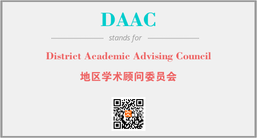 上述内容是“District Academic Advising Council”作为“DAAC”的缩写,解释为“地区学术顾问委员会”时的信息,以及英文缩略词DAAC所代表的英文单词,其对应的中文拼音、详细解释以及在英文中的流行度和相关分类、应用领域及应用示例等。