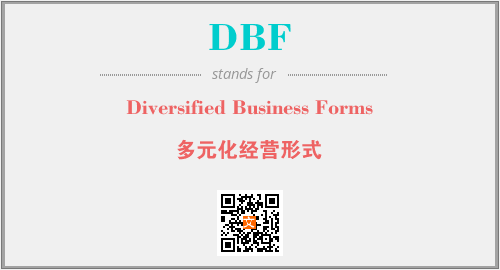 上述内容是“Diversified Business Forms”作为“DBF”的缩写,解释为“多元化经营形式”时的信息,以及英文缩略词DBF所代表的英文单词,其对应的中文拼音、详细解释以及在英文中的流行度和相关分类、应用领域及应用示例等。