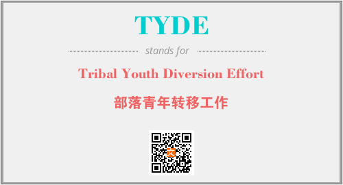 上述内容是“Tribal Youth Diversion Effort”作为“TYDE”的缩写,解释为“部落青年转移工作”时的信息,以及英文缩略词TYDE所代表的英文单词,其对应的中文拼音、详细解释以及在英文中的流行度和相关分类、应用领域及应用示例等。