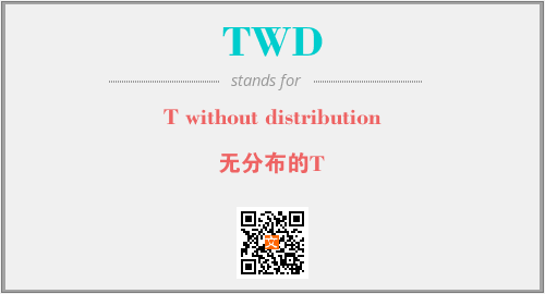 上述内容是“T without distribution”作为“TWD”的缩写,解释为“无分布的T”时的信息,以及英文缩略词TWD所代表的英文单词,其对应的中文拼音、详细解释以及在英文中的流行度和相关分类、应用领域及应用示例等。