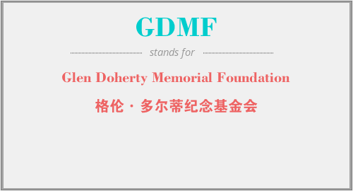 上述内容是“Glen Doherty Memorial Foundation”作为“GDMF”的缩写,解释为“格伦·多尔蒂纪念基金会”时的信息,以及英文缩略词GDMF所代表的英文单词,其对应的中文拼音、详细解释以及在英文中的流行度和相关分类、应用领域及应用示例等。