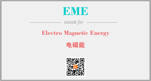 上述内容是“Electro Magnetic Energy”作为“EME”的缩写,解释为“电磁能”时的信息,以及英文缩略词EME所代表的英文单词,其对应的中文拼音、详细解释以及在英文中的流行度和相关分类、应用领域及应用示例等。