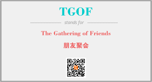 英文缩略词“TGOF”经常作为“The Gathering of Friends”的英文缩写来使用,中文表示:“朋友聚会”。本文将详细介绍英文缩写词TGOF所代表英文单词,其对应的中文拼音、详细解释以及在英语中的流行度。此外,还有关于缩略词TGOF的分类、应用领域及相关应用示例等。