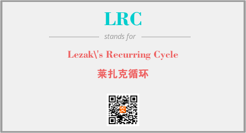 上述内容是“Lezak\'s Recurring Cycle”作为“LRC”的缩写,解释为“莱扎克循环”时的信息,以及英文缩略词LRC所代表的英文单词,其对应的中文拼音、详细解释以及在英文中的流行度和相关分类、应用领域及应用示例等。