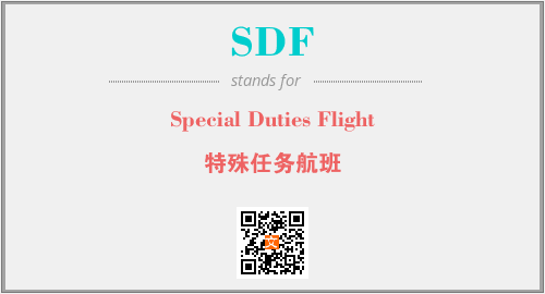 英文缩略词“SDF”经常作为“Special Duties Flight”的英文缩写来使用,中文表示:“特殊任务航班”。本文将详细介绍英文缩写词SDF所代表英文单词,其对应的中文拼音、详细解释以及在英语中的流行度。此外,还有关于缩略词SDF的分类、应用领域及相关应用示例等。
