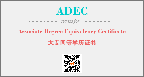上述内容是“Associate Degree Equivalency Certificate”作为“ADEC”的缩写,解释为“大专同等学历证书”时的信息,以及英文缩略词ADEC所代表的英文单词,其对应的中文拼音、详细解释以及在英文中的流行度和相关分类、应用领域及应用示例等。