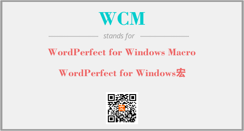 上述内容是“WordPerfect for Windows Macro”作为“WCM”的缩写,解释为“WordPerfect for Windows宏”时的信息,以及英文缩略词WCM所代表的英文单词,其对应的中文拼音、详细解释以及在英文中的流行度和相关分类、应用领域及应用示例等。