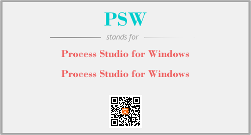 上述内容是“Process Studio for Windows”作为“PSW”的缩写,解释为“Process Studio for Windows”时的信息,以及英文缩略词PSW所代表的英文单词,其对应的中文拼音、详细解释以及在英文中的流行度和相关分类、应用领域及应用示例等。