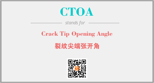 上述内容是“Crack Tip Opening Angle”作为“CTOA”的缩写,解释为“裂纹尖端张开角”时的信息,以及英文缩略词CTOA所代表的英文单词,其对应的中文拼音、详细解释以及在英文中的流行度和相关分类、应用领域及应用示例等。