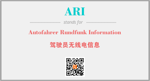 上述内容是“Autofahrer Rundfunk Information”作为“ARI”的缩写,解释为“驾驶员无线电信息”时的信息,以及英文缩略词ARI所代表的英文单词,其对应的中文拼音、详细解释以及在英文中的流行度和相关分类、应用领域及应用示例等。
