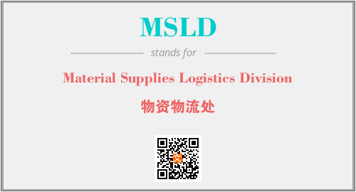 上述内容是“Material Supplies Logistics Division”作为“MSLD”的缩写,解释为“物资物流处”时的信息,以及英文缩略词MSLD所代表的英文单词,其对应的中文拼音、详细解释以及在英文中的流行度和相关分类、应用领域及应用示例等。