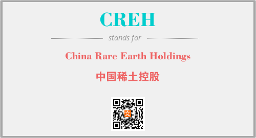 上述内容是“China Rare Earth Holdings”作为“CREH”的缩写,解释为“中国稀土控股”时的信息,以及英文缩略词CREH所代表的英文单词,其对应的中文拼音、详细解释以及在英文中的流行度和相关分类、应用领域及应用示例等。