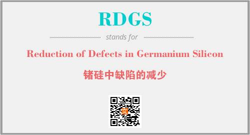 上述内容是“Reduction of Defects in Germanium Silicon”作为“RDGS”的缩写,解释为“锗硅中缺陷的减少”时的信息,以及英文缩略词RDGS所代表的英文单词,其对应的中文拼音、详细解释以及在英文中的流行度和相关分类、应用领域及应用示例等。