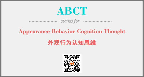英文缩略词“ABCT”经常作为“Appearance Behavior Cognition Thought”的英文缩写来使用,中文表示:“外观行为认知思维”。本文将详细介绍英文缩写词ABCT所代表英文单词,其对应的中文拼音、详细解释以及在英语中的流行度。此外,还有关于缩略词ABCT的分类、应用领域及相关应用示例等。