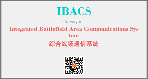 上述内容是“Integrated Battlefield Area Communications System”作为“IBACS”的缩写,解释为“综合战场通信系统”时的信息,以及英文缩略词IBACS所代表的英文单词,其对应的中文拼音、详细解释以及在英文中的流行度和相关分类、应用领域及应用示例等。