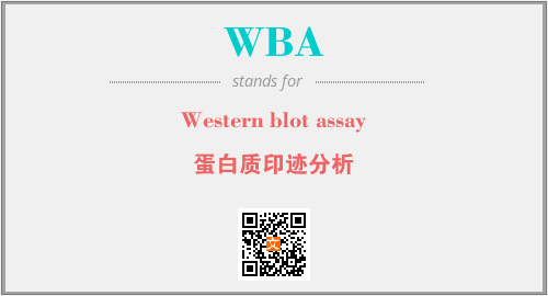 上述内容是“Western blot assay”作为“WBA”的缩写,解释为“蛋白质印迹分析”时的信息,以及英文缩略词WBA所代表的英文单词,其对应的中文拼音、详细解释以及在英文中的流行度和相关分类、应用领域及应用示例等。