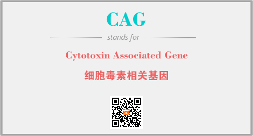 上述内容是“Cytotoxin Associated Gene”作为“CAG”的缩写,解释为“细胞毒素相关基因”时的信息,以及英文缩略词CAG所代表的英文单词,其对应的中文拼音、详细解释以及在英文中的流行度和相关分类、应用领域及应用示例等。