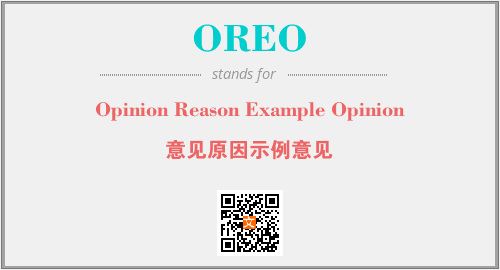 上述内容是“Opinion Reason Example Opinion”作为“OREO”的缩写,解释为“意见原因示例意见”时的信息,以及英文缩略词OREO所代表的英文单词,其对应的中文拼音、详细解释以及在英文中的流行度和相关分类、应用领域及应用示例等。