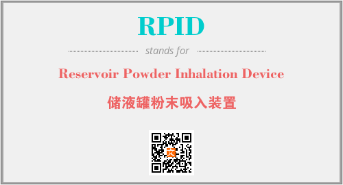 英文缩略词“RPID”经常作为“Reservoir Powder Inhalation Device”的英文缩写来使用,中文表示:“储液罐粉末吸入装置”。本文将详细介绍英文缩写词RPID所代表英文单词,其对应的中文拼音、详细解释以及在英语中的流行度。此外,还有关于缩略词RPID的分类、应用领域及相关应用示例等。