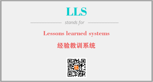 英文缩略词“LLS”经常作为“Lessons learned systems”的英文缩写来使用,中文表示:“经验教训系统”。本文将详细介绍英文缩写词LLS所代表英文单词,其对应的中文拼音、详细解释以及在英语中的流行度。此外,还有关于缩略词LLS的分类、应用领域及相关应用示例等。