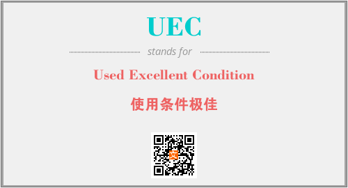 上述内容是“Used Excellent Condition”作为“UEC”的缩写,解释为“使用条件极佳”时的信息,以及英文缩略词UEC所代表的英文单词,其对应的中文拼音、详细解释以及在英文中的流行度和相关分类、应用领域及应用示例等。