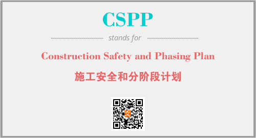 上述内容是“Construction Safety and Phasing Plan”作为“CSPP”的缩写,解释为“施工安全和分阶段计划”时的信息,以及英文缩略词CSPP所代表的英文单词,其对应的中文拼音、详细解释以及在英文中的流行度和相关分类、应用领域及应用示例等。
