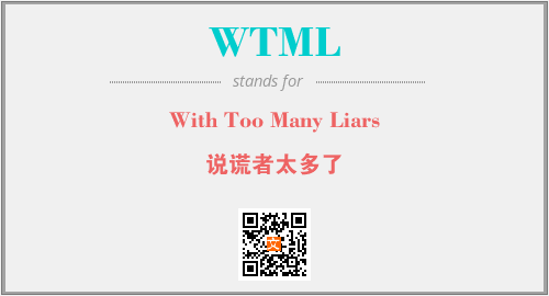 上述内容是“With Too Many Liars”作为“WTML”的缩写,解释为“说谎者太多了”时的信息,以及英文缩略词WTML所代表的英文单词,其对应的中文拼音、详细解释以及在英文中的流行度和相关分类、应用领域及应用示例等。