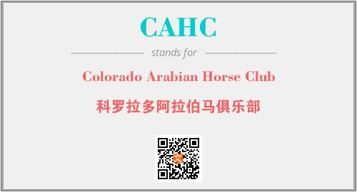 上述内容是“Colorado Arabian Horse Club”作为“CAHC”的缩写,解释为“科罗拉多阿拉伯马俱乐部”时的信息,以及英文缩略词CAHC所代表的英文单词,其对应的中文拼音、详细解释以及在英文中的流行度和相关分类、应用领域及应用示例等。