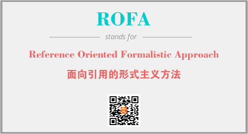 上述内容是“Reference Oriented Formalistic Approach”作为“ROFA”的缩写,解释为“面向引用的形式主义方法”时的信息,以及英文缩略词ROFA所代表的英文单词,其对应的中文拼音、详细解释以及在英文中的流行度和相关分类、应用领域及应用示例等。