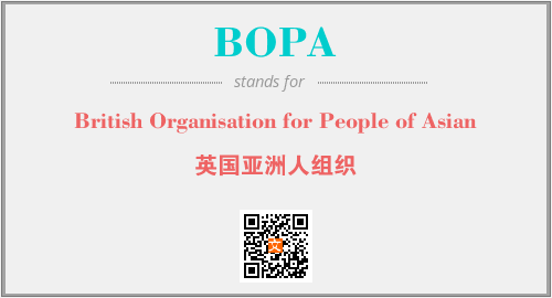 以上为British Organisation for People of Asian英文缩略词BOPA的中文解释,以及该英文缩写在英语的流行度、分类和应用领域方面的信息。