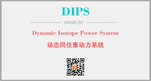 上述内容是“Dynamic Isotope Power System”作为“DIPS”的缩写,解释为“动态同位素动力系统”时的信息,以及英文缩略词DIPS所代表的英文单词,其对应的中文拼音、详细解释以及在英文中的流行度和相关分类、应用领域及应用示例等。