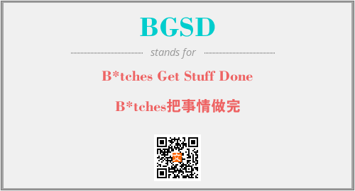 上述内容是“B*tches Get Stuff Done”作为“BGSD”的缩写,解释为“B*tches把事情做完”时的信息,以及英文缩略词BGSD所代表的英文单词,其对应的中文拼音、详细解释以及在英文中的流行度和相关分类、应用领域及应用示例等。