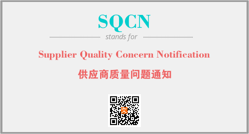 英文缩略词“SQCN”经常作为“Supplier Quality Concern Notification”的英文缩写来使用,中文表示:“供应商质量问题通知”。本文将详细介绍英文缩写词SQCN所代表英文单词,其对应的中文拼音、详细解释以及在英语中的流行度。此外,还有关于缩略词SQCN的分类、应用领域及相关应用示例等。