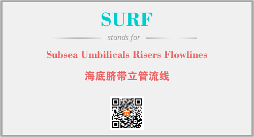 英文缩略词“SURF”经常作为“Subsea Umbilicals Risers Flowlines”的英文缩写来使用,中文表示:“海底脐带立管流线”。本文将详细介绍英文缩写词SURF所代表英文单词,其对应的中文拼音、详细解释以及在英语中的流行度。此外,还有关于缩略词SURF的分类、应用领域及相关应用示例等。