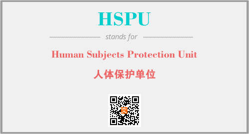 上述内容是“Human Subjects Protection Unit”作为“HSPU”的缩写,解释为“人体保护单位”时的信息,以及英文缩略词HSPU所代表的英文单词,其对应的中文拼音、详细解释以及在英文中的流行度和相关分类、应用领域及应用示例等。