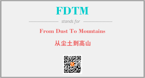 英文缩略词“FDTM”经常作为“From Dust To Mountains”的英文缩写来使用,中文表示:“从尘土到高山”。本文将详细介绍英文缩写词FDTM所代表英文单词,其对应的中文拼音、详细解释以及在英语中的流行度。此外,还有关于缩略词FDTM的分类、应用领域及相关应用示例等。