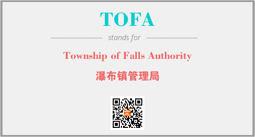 上述内容是“Township of Falls Authority”作为“TOFA”的缩写,解释为“瀑布镇管理局”时的信息,以及英文缩略词TOFA所代表的英文单词,其对应的中文拼音、详细解释以及在英文中的流行度和相关分类、应用领域及应用示例等。