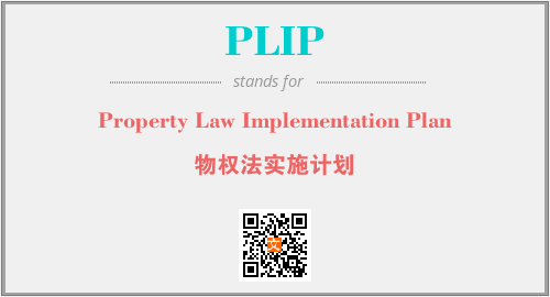 上述内容是“Property Law Implementation Plan”作为“PLIP”的缩写,解释为“物权法实施计划”时的信息,以及英文缩略词PLIP所代表的英文单词,其对应的中文拼音、详细解释以及在英文中的流行度和相关分类、应用领域及应用示例等。