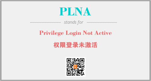 上述内容是“Privilege Login Not Active”作为“PLNA”的缩写,解释为“权限登录未激活”时的信息,以及英文缩略词PLNA所代表的英文单词,其对应的中文拼音、详细解释以及在英文中的流行度和相关分类、应用领域及应用示例等。