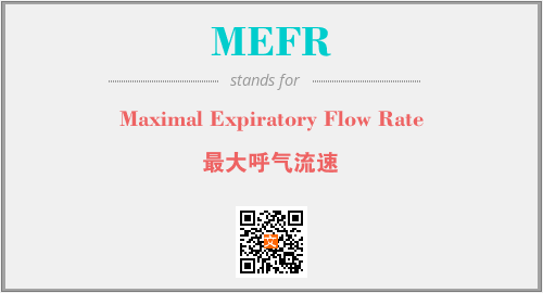 上述内容是“Maximal Expiratory Flow Rate”作为“MEFR”的缩写,解释为“最大呼气流速”时的信息,以及英文缩略词MEFR所代表的英文单词,其对应的中文拼音、详细解释以及在英文中的流行度和相关分类、应用领域及应用示例等。