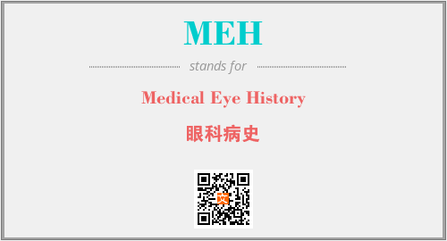 英文缩略词“MEH”经常作为“Medical Eye History”的英文缩写来使用,中文表示:“眼科病史”。本文将详细介绍英文缩写词MEH所代表英文单词,其对应的中文拼音、详细解释以及在英语中的流行度。此外,还有关于缩略词MEH的分类、应用领域及相关应用示例等。