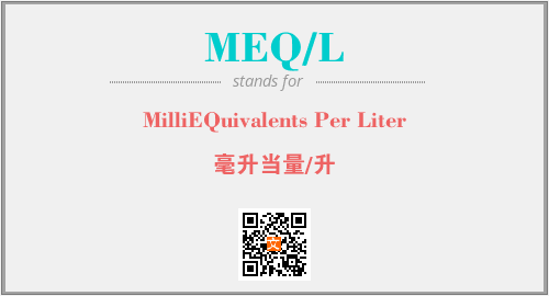 上述内容是“MilliEQuivalents Per Liter”作为“MEQ/L”的缩写,解释为“毫升当量/升”时的信息,以及英文缩略词MEQ/L所代表的英文单词,其对应的中文拼音、详细解释以及在英文中的流行度和相关分类、应用领域及应用示例等。