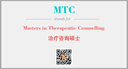 英文缩略词“MTC”经常作为“Masters in Therapeutic Counselling”的英文缩写来使用,中文表示:“治疗咨询硕士”。本文将详细介绍英文缩写词MTC所代表英文单词,其对应的中文拼音、详细解释以及在英语中的流行度。此外,还有关于缩略词MTC的分类、应用领域及相关应用示例等。