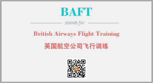 英文缩略词“BAFT”经常作为“British Airways Flight Training”的英文缩写来使用,中文表示:“英国航空公司飞行训练”。本文将详细介绍英文缩写词BAFT所代表英文单词,其对应的中文拼音、详细解释以及在英语中的流行度。此外,还有关于缩略词BAFT的分类、应用领域及相关应用示例等。