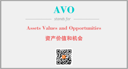 上述内容是“Assets Values and Opportunities”作为“AVO”的缩写,解释为“资产价值和机会”时的信息,以及英文缩略词AVO所代表的英文单词,其对应的中文拼音、详细解释以及在英文中的流行度和相关分类、应用领域及应用示例等。