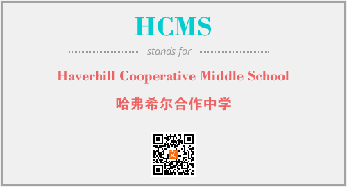 英文缩略词“HCMS”经常作为“Haverhill Cooperative Middle School”的英文缩写来使用,中文表示:“哈弗希尔合作中学”。本文将详细介绍英文缩写词HCMS所代表英文单词,其对应的中文拼音、详细解释以及在英语中的流行度。此外,还有关于缩略词HCMS的分类、应用领域及相关应用示例等。