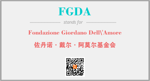 上述内容是“Fondazione Giordano Dell\'Amore”作为“FGDA”的缩写,解释为“佐丹诺·戴尔·阿莫尔基金会”时的信息,以及英文缩略词FGDA所代表的英文单词,其对应的中文拼音、详细解释以及在英文中的流行度和相关分类、应用领域及应用示例等。